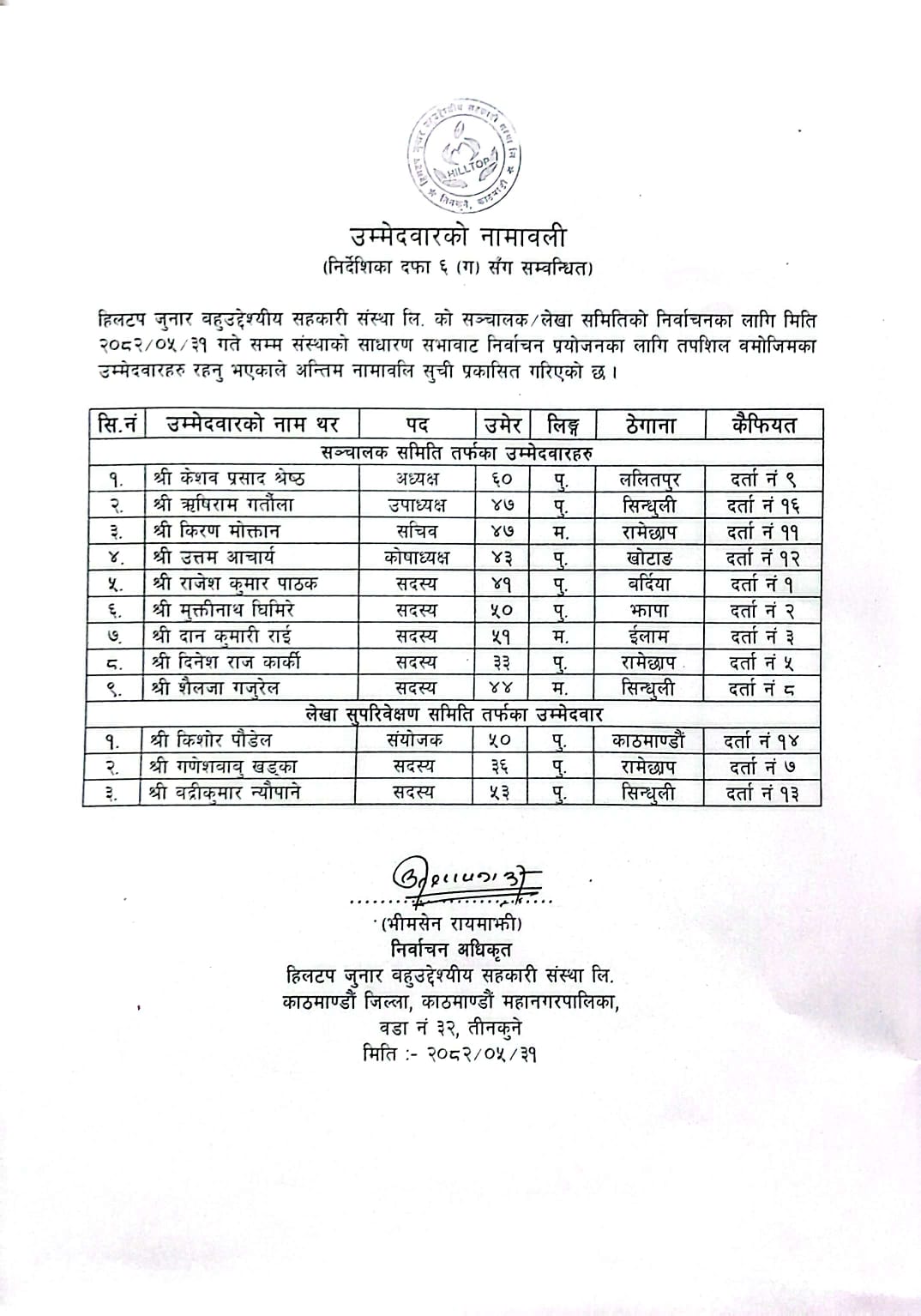 १५ औ वार्षिक साधारण सभा कर्मचारी तथा समिति समुह